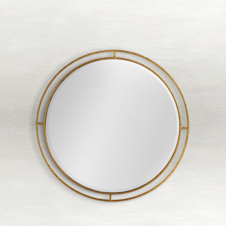 The Belafonte Mirror is a striking decorative accent that combines simplicity and elegance. Measuring 36 x 36 inches, this round mirror is framed by a sleek gilded gold metal outline with a modern double-ring design. Its versatile size and timeless aesthetic make it an ideal choice for entryways, living rooms, bedrooms, or any space in need of a refined focal point. The Belafonte Mirror effortlessly enhances light and depth, bringing sophistication and style to your home decor.