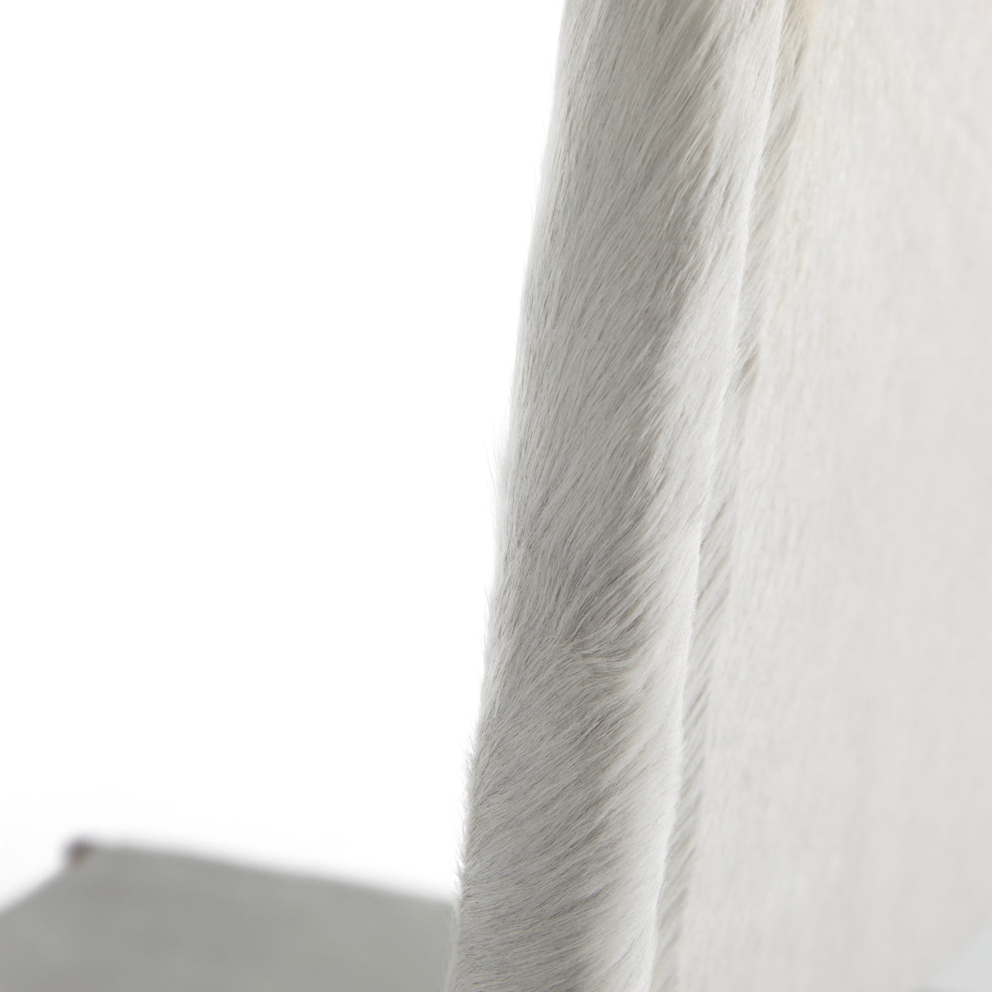 - Upholstered in ivory hair-on-hide seat and back panels for a sophisticated, textured look