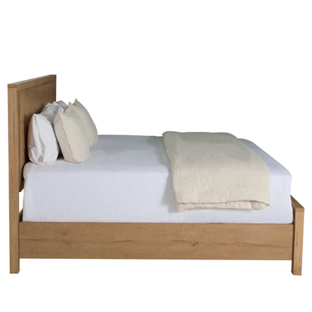 The Wren Bed in Dawn embodies natural simplicity elevated through thoughtful craftsmanship. Made of oak with a warm Dawn finish, the bed features clean lines and subtle carved detailing on both the headboard and footboard. The attention to detail as seen on the joinery shoe the artisanal quality of the piece, while the rustic finish and visible grain create a sense of organic ease. Available in both Queen and King sizes.