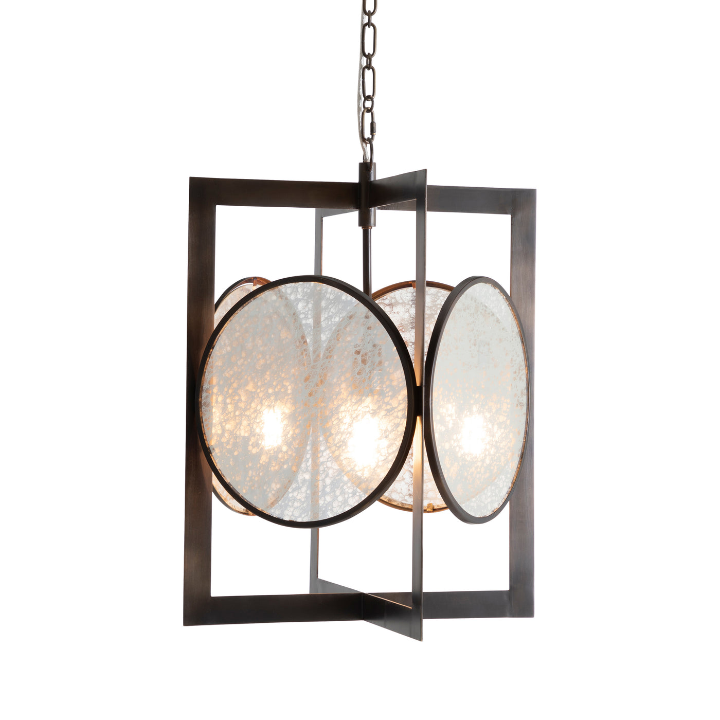 The Clove Pendant is a large and captivating lighting piece that boldly combines contemporary design with an artistic flair. Featuring a geometric frame that encases spherical mercury glass, this pendant creates a stunning visual effect. The rubbed bronze finish adds a touch of elegance, while the unique arrangement of shapes brings a timeless, sculptural quality to the fixture. The Clove Pendant is designed to be a focal point that enhances any interior with its sophisticated and eye-catching design. Also available in a brushed brass finish.