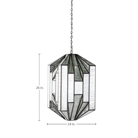 Intriguing planes of mercury glass shimmer and shine in the Emilio Pendant. The metal framework, finished in a dark, antiqued brushed brass, complements the reflective surfaces, adding to its timeless appeal with art deco appeal. This pendant light is perfect for adding a touch of vintage glamour to various settings, including the living room, bedroom, or kitchen.