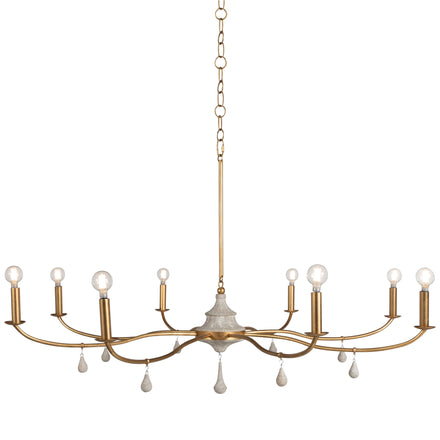 - Delicate plaster drops and swooping arms add graceful movement and detail to its grand yet slim silhouette