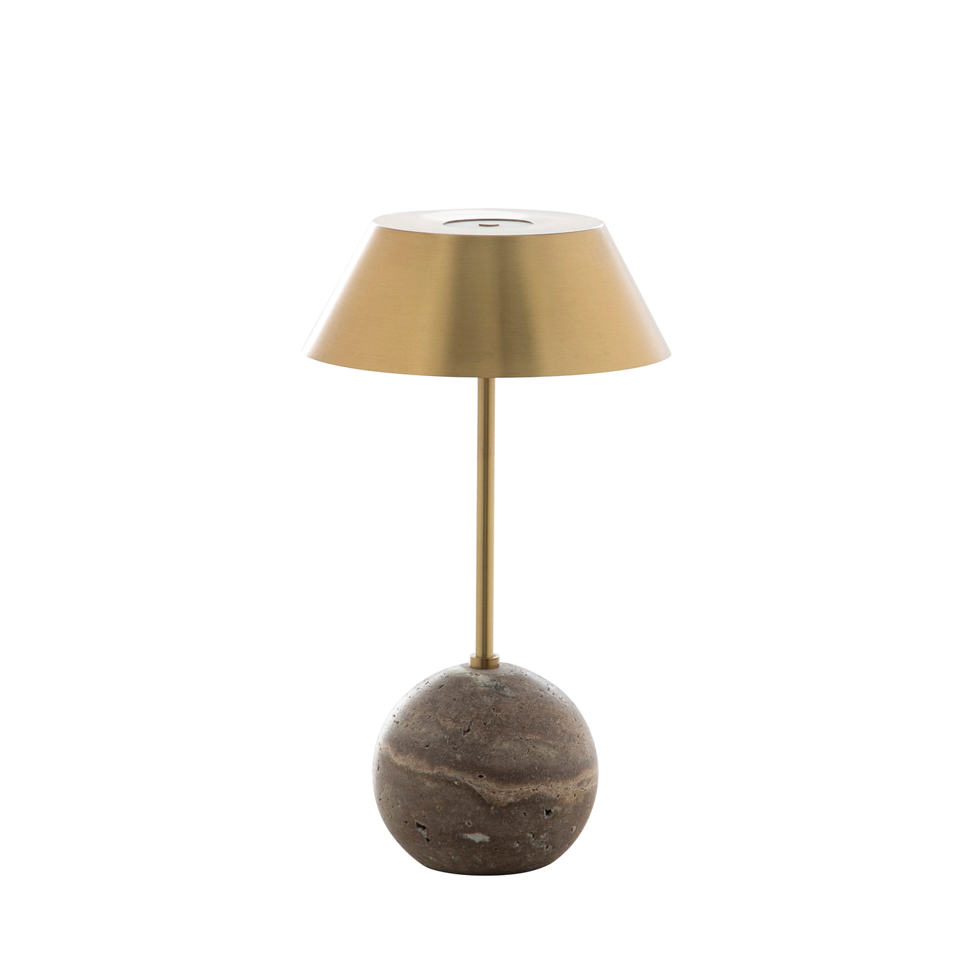 The Firefly Table Lamp blends refined elegance with sculptural contrast, making it a striking addition to any space. A polished brass finish lends warmth and sophistication, while the Marron Imperial Brown marble base grounds the design with natural richness. The pairing of gleaming metal and dark stone creates a timeless look that is both modern and classic. A discreet touch switch, located on the top of the shade, allows for effortless control, while the integrated LED bulb provides long-lasting, energy-efficient light. Ideal for side tables, consoles, or nightstands, this lamp provides ambient lighting while serving as an artful accent.