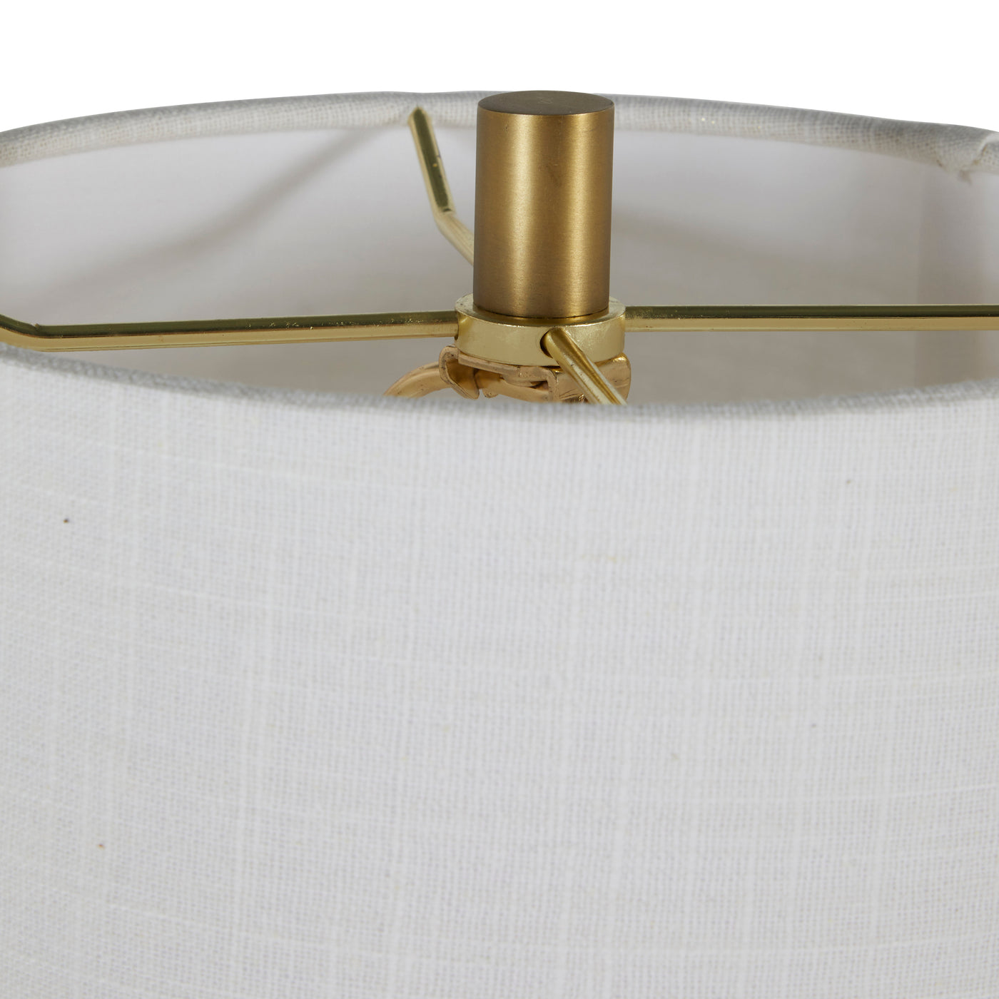 - Crisp white linen shade delivers a soft, diffused glow to create a warm and inviting ambiance