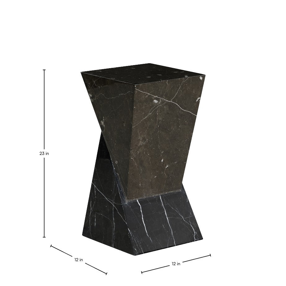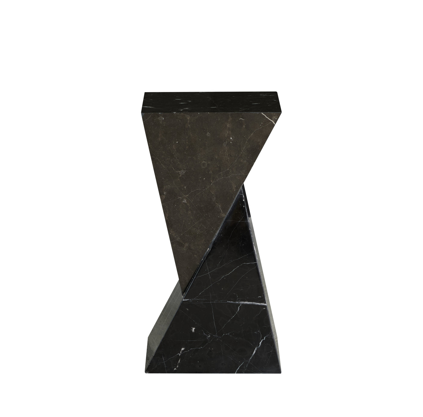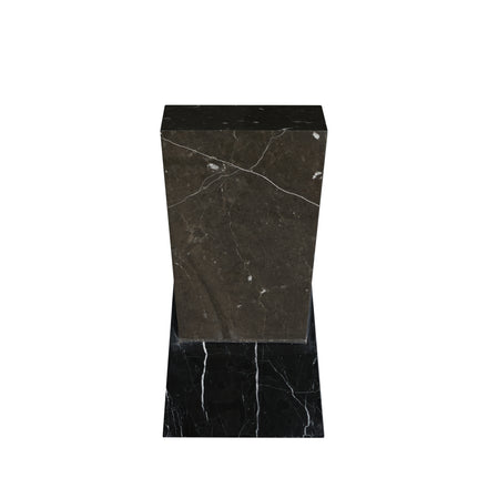 The Aldric Drink Table makes a bold architectural statement through its sculpted form and contrasting tones. It features our Dark Imperial and Nero Marquina finishes, creating a dramatic interplay of depth and texture, while fully welcoming the natural veins of the stone. Its angular silhouette adds dynamic movement while maintaining balance and stability. Compact yet impactful, this table is perfect beside a lounge chair, sofa, or as an accent in a refined living space. The Aldric brings together natural stone artistry and geometric precision for a sophisticated modern edge.