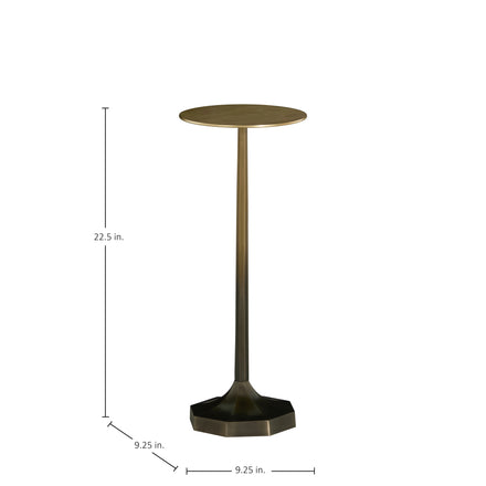 The Ombre Drink Table embodies refined simplicity with a striking modern edge. Crafted from aluminum and mild steel in a Faded Bronze finish, this piece features a subtle gradient effect—transitioning from a polished bronze top to a deep, darkened base. Its sleek silhouette and compact form make it an ideal accent for tight spaces or as a sophisticated companion to a sofa or chair. Balancing artistry and utility, the Ombre Drink Table adds a contemporary touch of metallic warmth to any room.