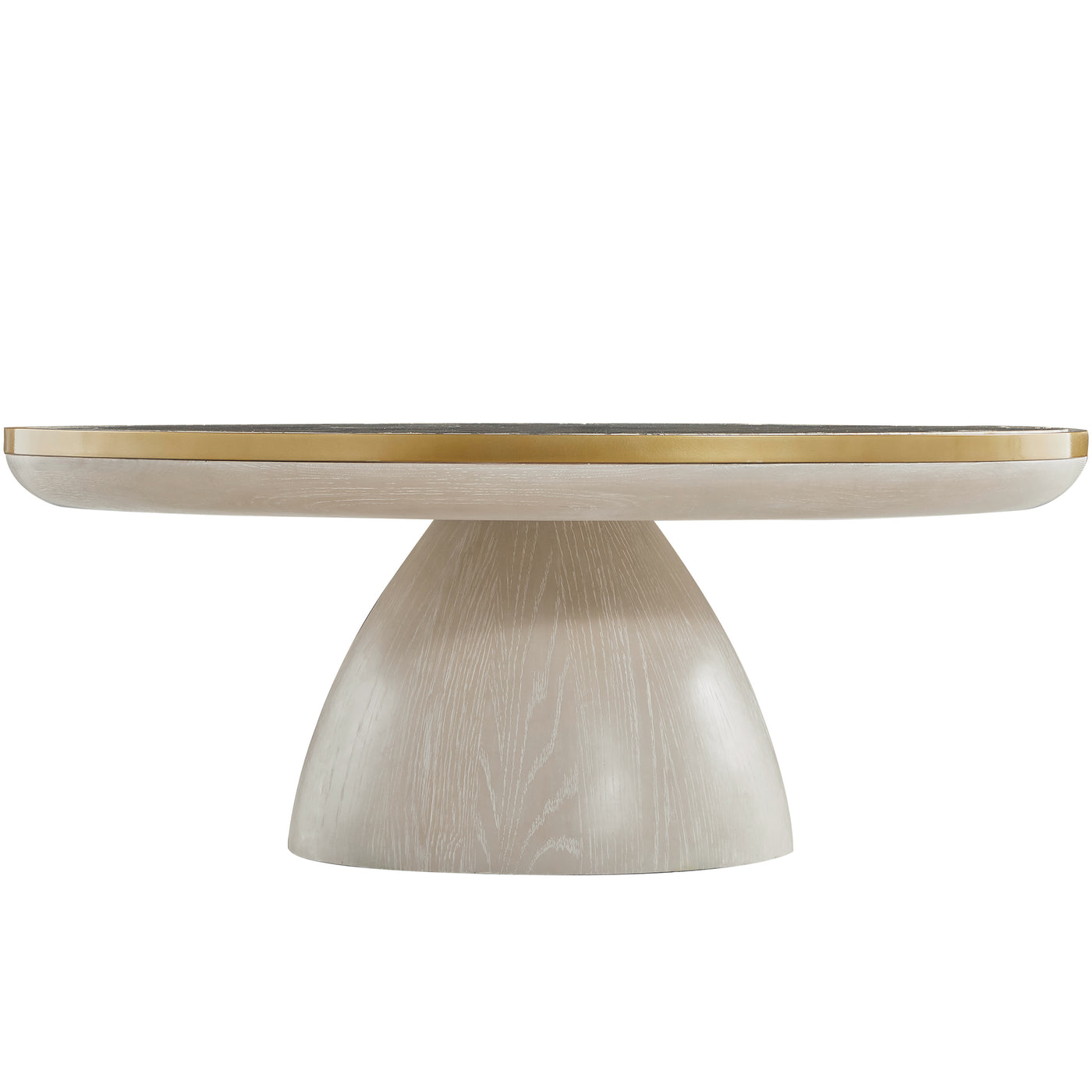 - Sculptural base in genuine white cerused oak veneer blends warmth with modern sophistication