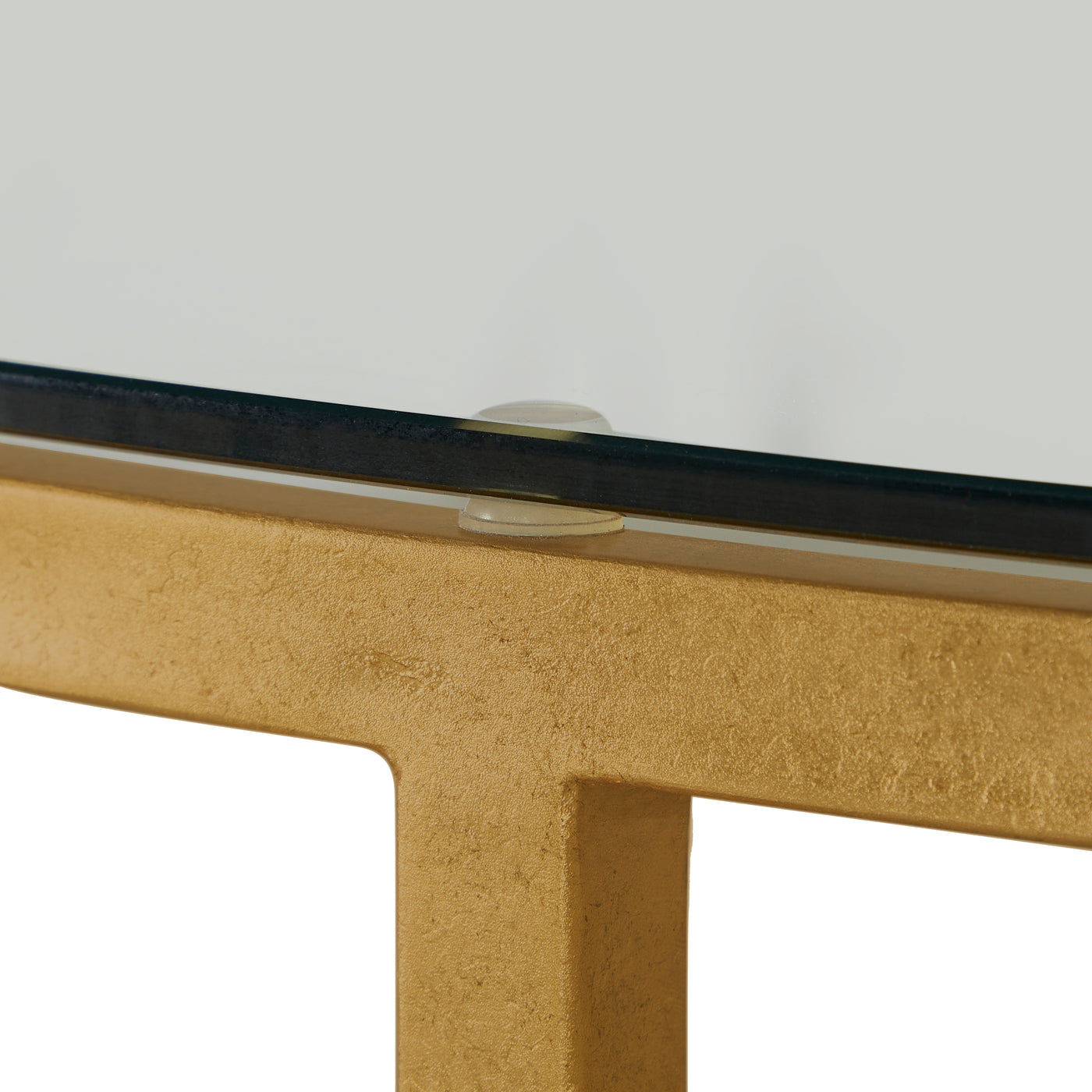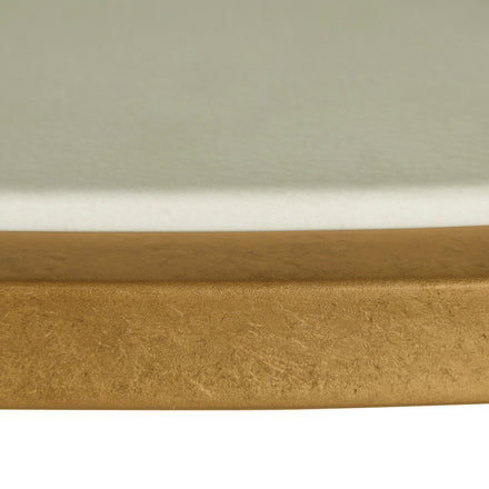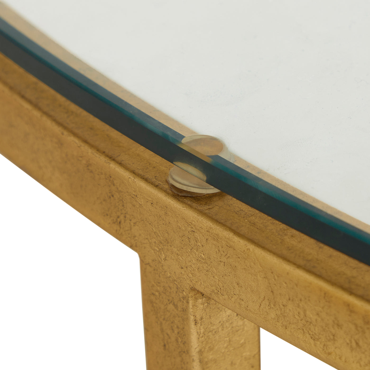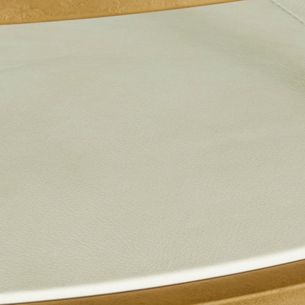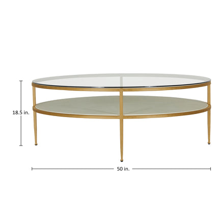 Crafted with a luxurious antique brass leaf frame, this 50-inch wide statement piece features a sleek glass surface that exudes modern sophistication. The lower white leather shelf adds a touch of soft texture and refined contrast, offering both beauty and functional storage for styling books and decor. The Constance Coffee Table is perfect for chic, contemporary, or transitional interiors.
