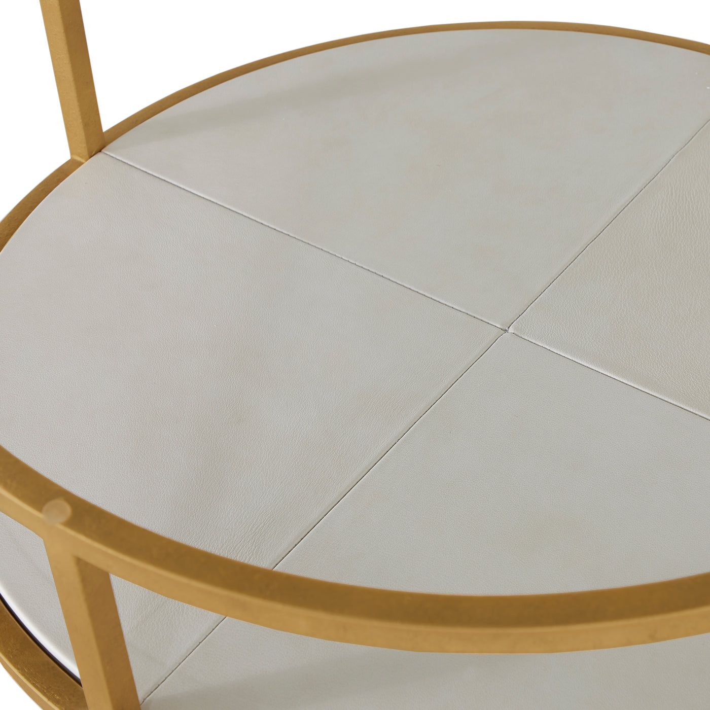 - Includes a lower white leather shelf offering soft texture and refined contrast for stylish storage or display