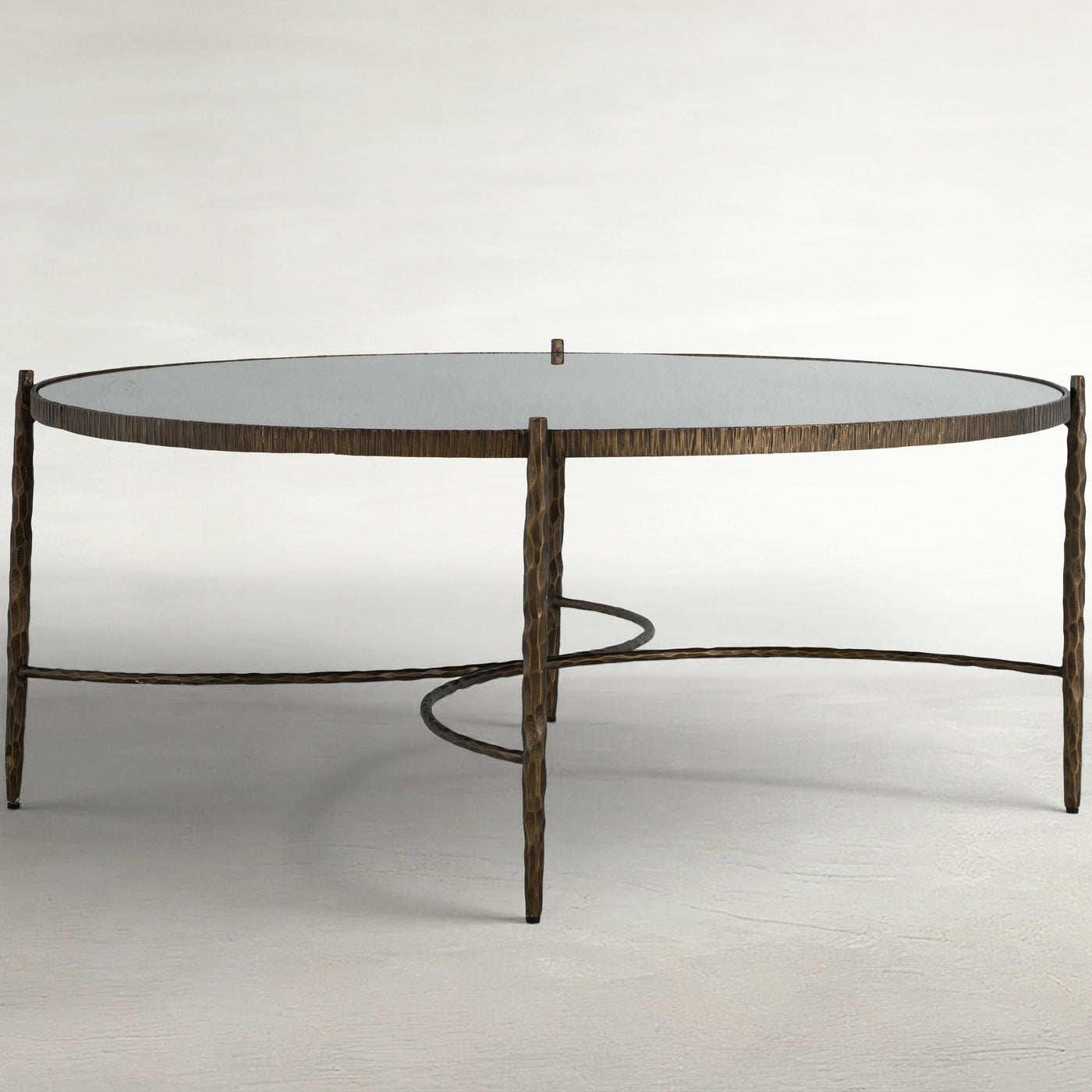 The Lyra Mirrored Coffee Table is a striking fusion of artistry and functionality, designed to elevate any living space. Crafted from forged iron, the table features a hand-applied texture that adds depth and character. The antique mirrored top enhances its elegant appeal, reflecting light and creating a sense of spaciousness. Perfect for modern or traditional interiors, the Lyra Mirrored Coffee Table effortlessly combines timeless materials with contemporary design, making it a captivating centerpiece in your home.