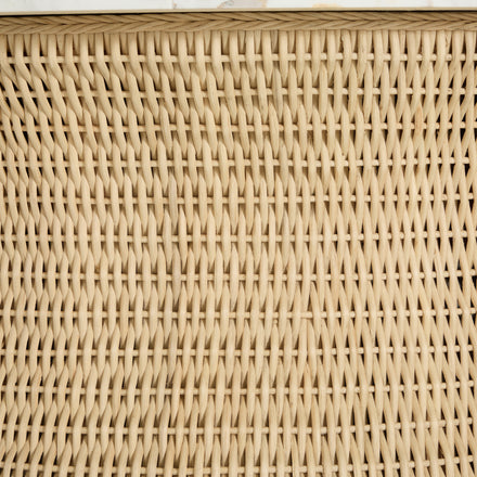 The Marina Coffee Table balances natural texture and refined elegance, featuring a beautifully handwoven base of bleached wicker paired with a Volakas marble top etched with a delicate leaf design. Its rounded silhouette creates a soft, inviting presence, while the combination of organic materials and sculptural form adds depth and sophistication. Designed to anchor a living space with effortless style, the Marina brings an airy, coastal-inspired charm that complements a range of aesthetics—from relaxed modern to refined coastal living.