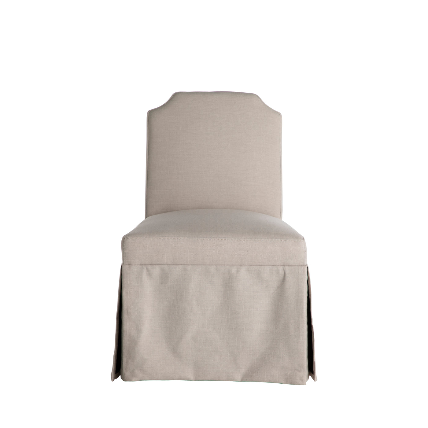 The classic silhouette of our Edmund Dining Chair is a versatile piece, perfect for your dining table, desk, or vanity. Its elegant, armless profile features notched sides, while the fully skirted base creates a clean and sophisticated look. Upholstered in a durable, easy-care performance fabric, this chair is designed for both style and convenience. The plush cushioning provides comfort, supported by a sturdy wood frame for lasting quality. A functional handle on the back adds a practical touch, making the Edmund Dining Chair a timeless addition to any room.