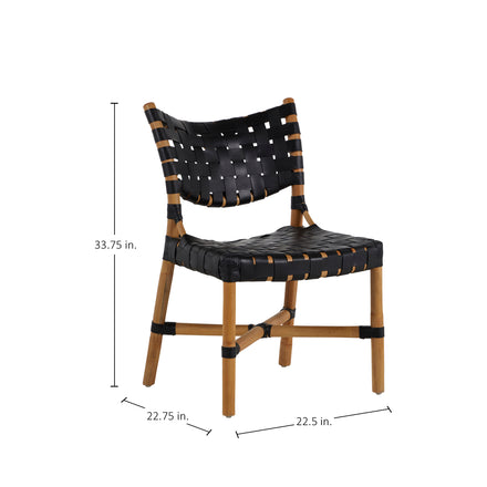 Morrison Natural Rattan Leather Open Weave Side Chair - Black