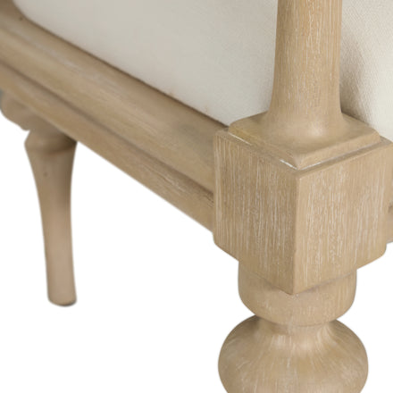 - Turned legs and sculpted frame for a graceful silhouette.
