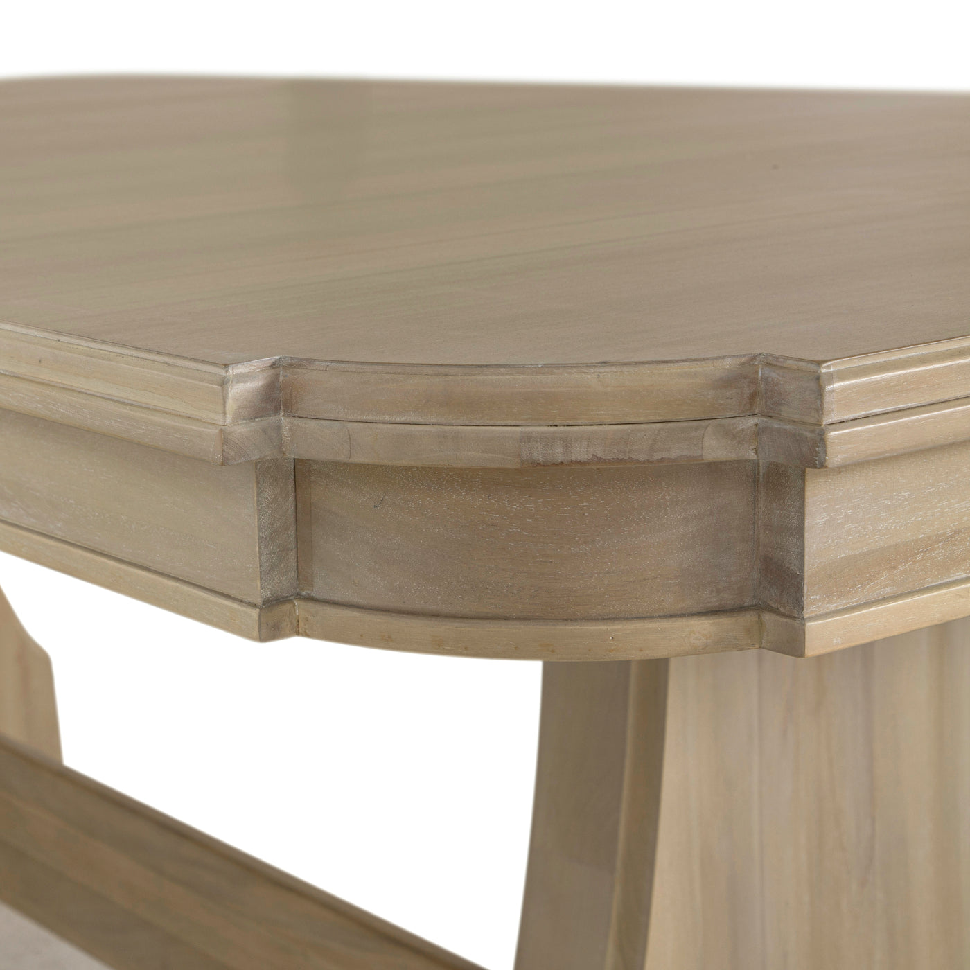 The Maris Extension Dining Table draws inspiration from the inviting simplicity of 18th-century European countryside design. Crafted from ribbon mahogany in the Drift finish, this table highlights expert craftsmanship with its elegant joinery details connecting the stretcher to the base—a nod to traditional woodworking techniques. Its soft, curved edges add visual interest and refinement, balancing rustic charm with timeless sophistication. Designed to adapt for any gathering, the Maris extends from 78" to an impressive 118" with two 20" leaf inserts, comfortably seating 6–8 guests when closed and up to 10–12 when fully extended.