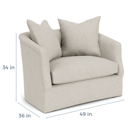 - Chair-and-a-half scale offers generous space for curling up or sharing.