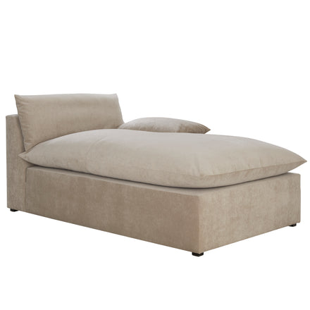 The Carrera Bay RAF Chaise offers an inviting right-arm-facing design with an extended seat for stretching out in comfort. Its low-profile frame, soft lines, and cloud-like cushions make it a favorite spot for relaxing, reading, or napping. Pair it with other modular pieces to create a sectional that perfectly fits your space. Available in a variety of fabrics at your local Gabby store.