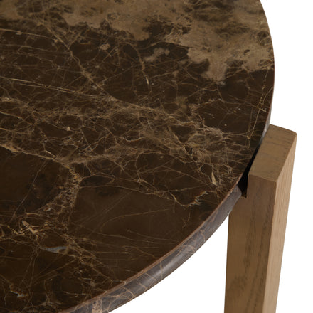The Drift Side Table in Dawn pairs soft natural tones with refined craftsmanship. The oak base, finished in Dawn, features fluid curves and architectural symmetry that elevate its organic character. Topped with a beautifully polished Dark Emperador marble slab, the design captures the essence of contrast—light oak against dark stone—for a look that is both grounded and elevated. Compact yet substantial, it lends warmth and elegance beside a sofa or lounge chair.