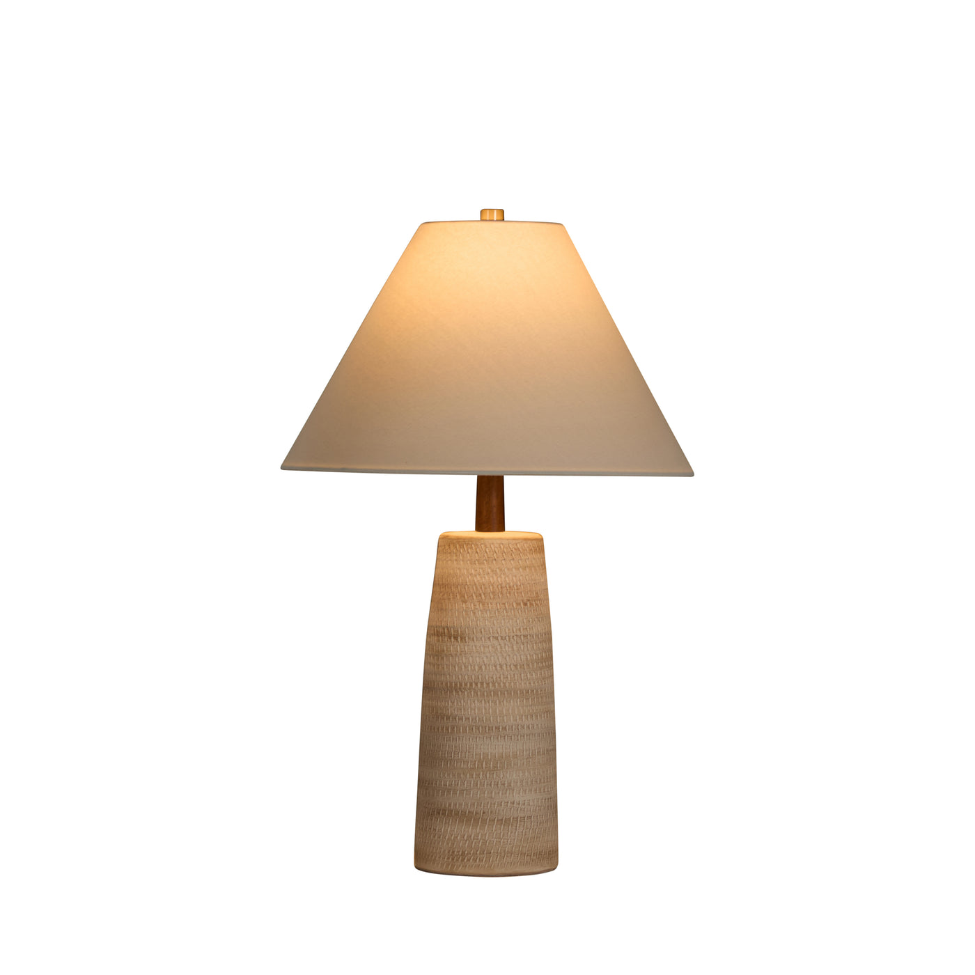 The Breeze Tall Table Lamp brings the same serene texture and character as the classic Breeze design, reimagined in a sleek, elongated form. Its tubular rectangular ceramic base subtly widens toward the bottom, hand-brushed in a soft white finish with delicate notch-like detailing for understated dimension. A wooden stem adds warmth and natural elegance, while the angled white linen shade introduces a modern twist and diffuses light beautifully. Compact yet visually striking, the Breeze Tall Table Lamp is perfect for side tables, nightstands, or console surfaces, effortlessly enhancing both contemporary and transitional interiors.