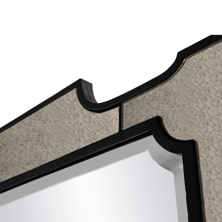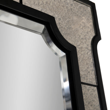 - Antiqued mirror panels around the outer frame for a refined vintage-inspired aesthetic