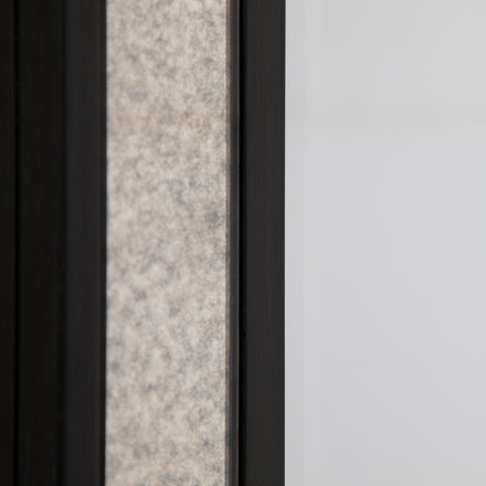 The Chantel Full-Length Mirror is a stunning blend of vintage charm and modern sophistication, designed to add depth and elegance to any space. Standing at an impressive 78 inches high, this statement mirror features a black iron frame that provides a bold yet refined foundation. The outer frame of antiqued mirror panels enhances its timeless appeal, while the inner clean mirror ensures a crisp, clear reflection.
