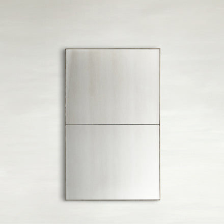 - Two large beveled antique mirror panels enhance depth and reduce distortion