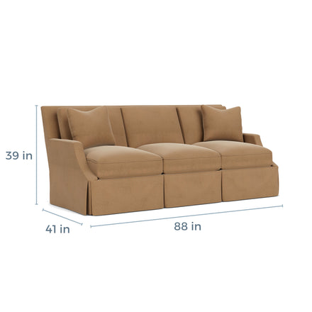 Artisan-crafted in North Carolina, the Clark Falls Sofa masterfully blends midcentury style with classic elements, creating a piece that exudes timeless elegance. Its deep seating is meticulously hand-fitted for ultimate comfort, providing a luxurious lounging experience. The skirted frame adds a polished look, enhancing the sofa's sophisticated appeal. Every detail reflects the dedication and skill of our experienced upholsterers, making the Clark Falls Sofa a testament to enduring design and superior craftsmanship. Perfect for any living space, this sofa combines aesthetic beauty with exceptional comfort, offering a refined sanctuary in your home.