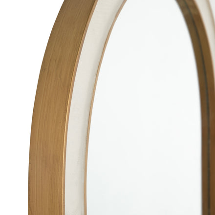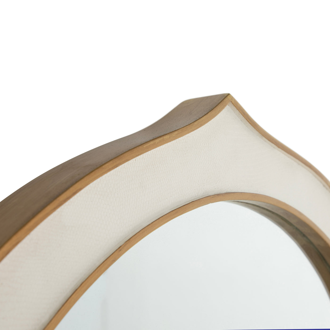 The Allie Mirror exudes timeless elegance with its graceful silhouette and luxurious detailing. Framed in a gilded gold finish, it is beautifully accented with a white faux-shagreen texture that adds a sophisticated touch. The elongated, curved shape lends an air of refinement, making it a perfect addition to any entryway, bedroom, or living space. Both functional and decorative, the Allie Mirror effortlessly enhances the aesthetic of your home while reflecting your style and taste.