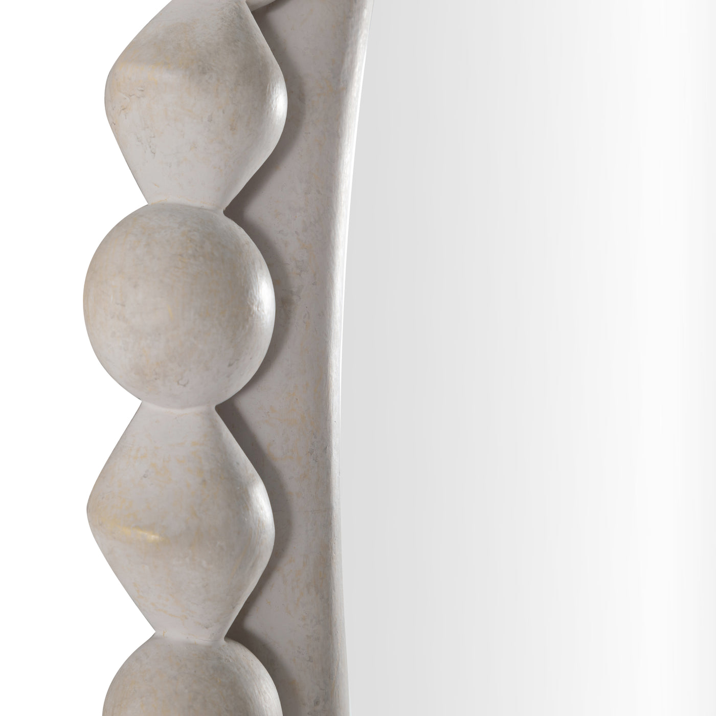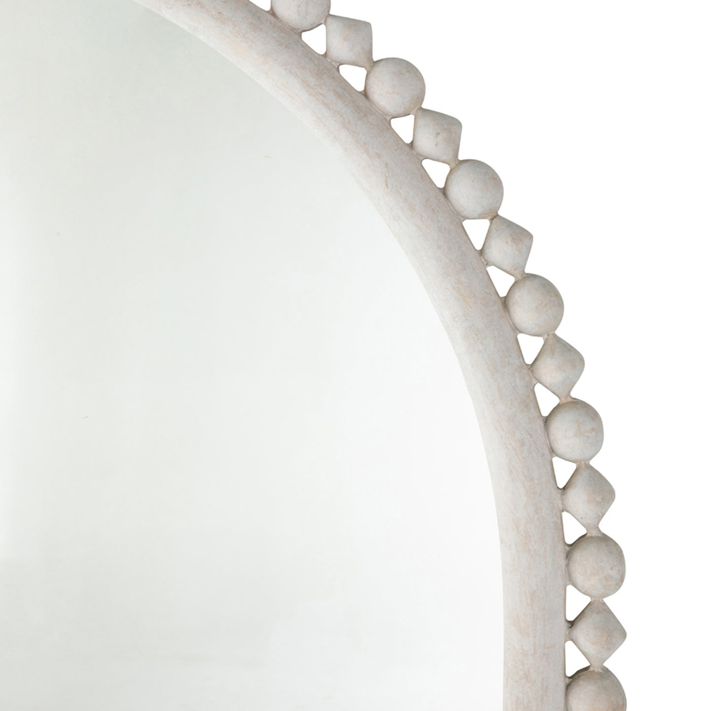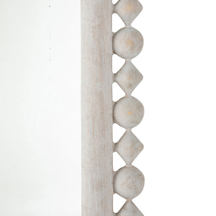 The Small Belle Mirror offers a charming and artistic addition to any room, perfectly sized for placement over dressers or in rooms with lower ceilings. Its elegant arch-shaped design is framed in a distressed white finish, creating a subtle, vintage appeal. Surrounding the mirror is an alternating pattern of diamond and circle shapes, adding visual interest and a unique style without overpowering the space. This mirror’s understated artistry and clean lines make it an ideal accent piece, bringing both functionality and a touch of whimsy to your home decor.