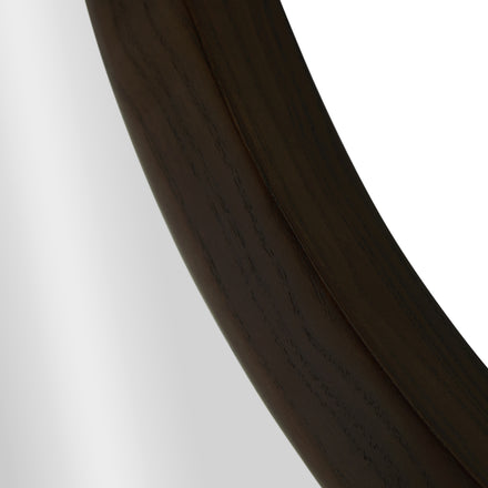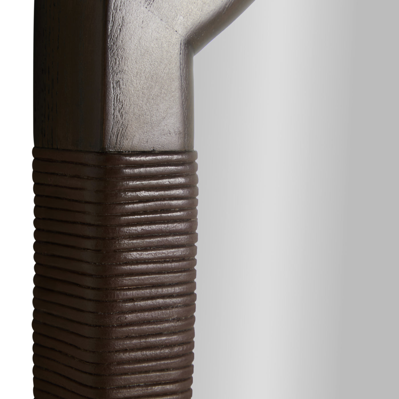 The Darian Vanity Mirror in the Dusk finish is a refined take on organic luxury. Crafted from oak wood in a deep Dusk tone and accented with Gramado Saddle leather, it features an elongated quatrefoil-inspired silhouette that adds sculptural elegance and height. The leather wrapping along the sides provides warm texture and visual depth, beautifully contrasting against the rich wood grain. Measuring 24" wide by 36" high, this mirror balances structure and softness, making it a stunning addition above a vanity, console, or bathroom sink. Its thoughtful detailing and materials bring a grounded sophistication to any interior.