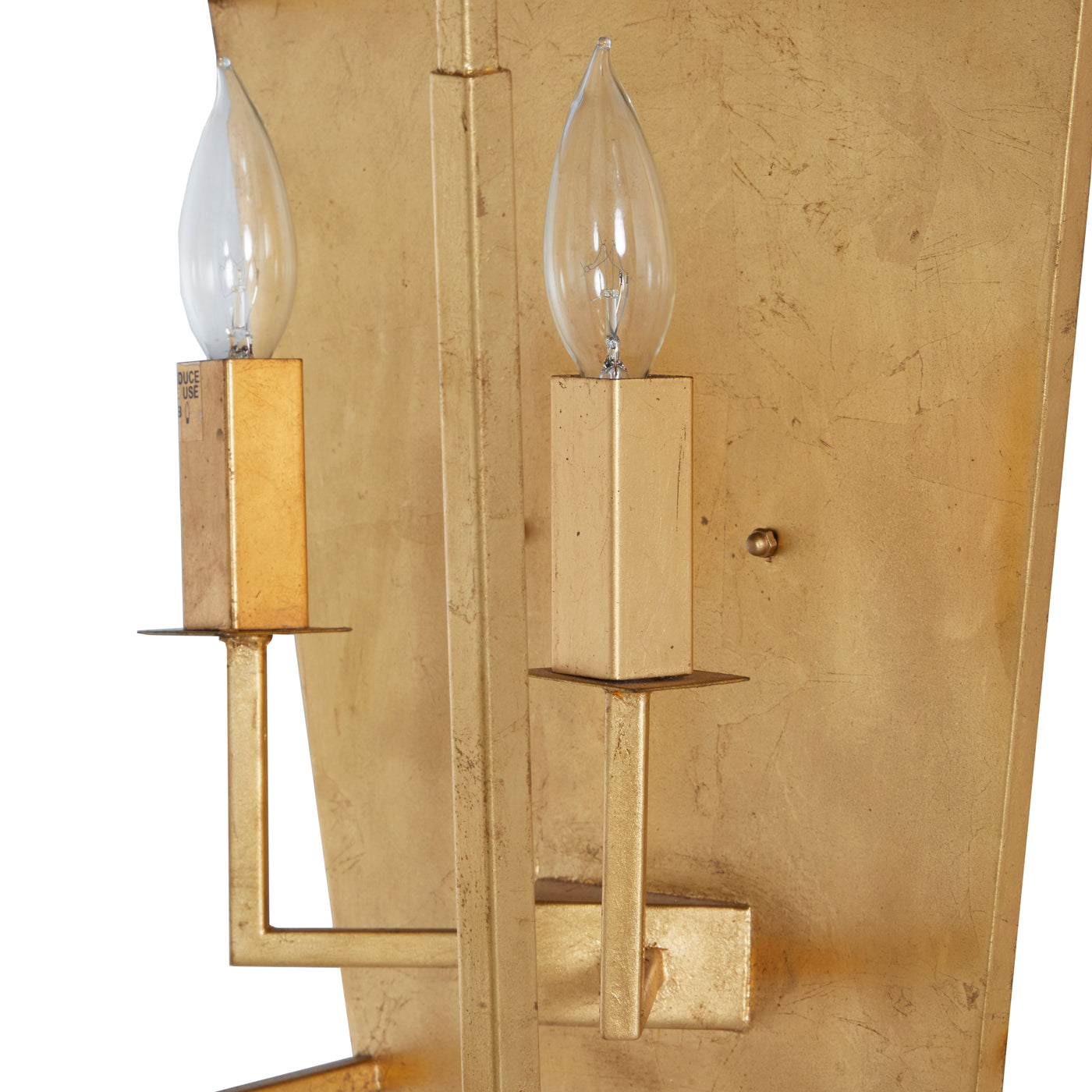 The Adler Sconce is a beautifully crafted lighting fixture that brings vintage charm and contemporary design to your walls. Finished in an exquisite vintage gold, this sconce features an open geometric frame that adds a touch of elegance and sophistication to any space. The two candle-style lights within the frame enhance its classic appeal, casting a warm and inviting glow. Ideal for hallways, living rooms, or bedrooms, the Adler Sconce serves as a versatile accent piece that complements a wide range of interior styles, from modern to traditional. Its compact yet striking design makes it perfect for adding a touch of luxury and refined style to any setting.