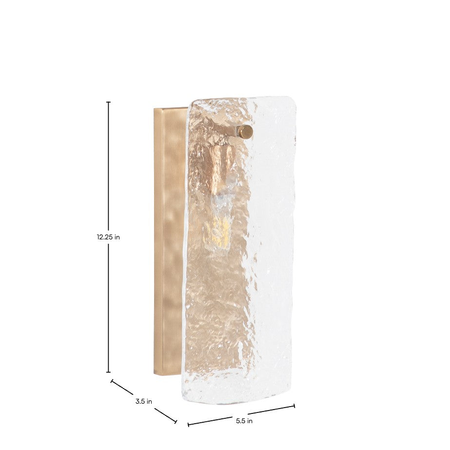 Introducing the Augusta Sconce, an elegant extension of the Augusta Flush Mount, featuring a sleek back metal plate finished in antique brass, offering a touch of timeless elegance. The centerpiece of the design is the textured cast glass panel, which acts as a beautiful diffuser, softening the light and creating a warm, inviting glow. The Augusta Sconce is ADA compliant, making it an ideal choice for both residential and commercial settings. Whether it's adding a refined touch to a hallway, accentuating the ambiance of a living room, or bringing a modern flair to a commercial space, this sconce is versatile and stylish.