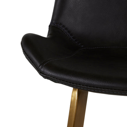 The Hines Counter Height Stool is a stylish and comfortable addition to any kitchen or bar area. Upholstered in dark brown faux leather, it offers a rich, sophisticated look that's easy to maintain. The iron legs, finished in stainless gold, provide a striking contrast and add a touch of modern elegance. With its ergonomic design, this stool ensures comfort, making it perfect for extended use. Durable and versatile, the Hines Counter Height Stool complements a variety of interior styles, from contemporary to industrial chic.